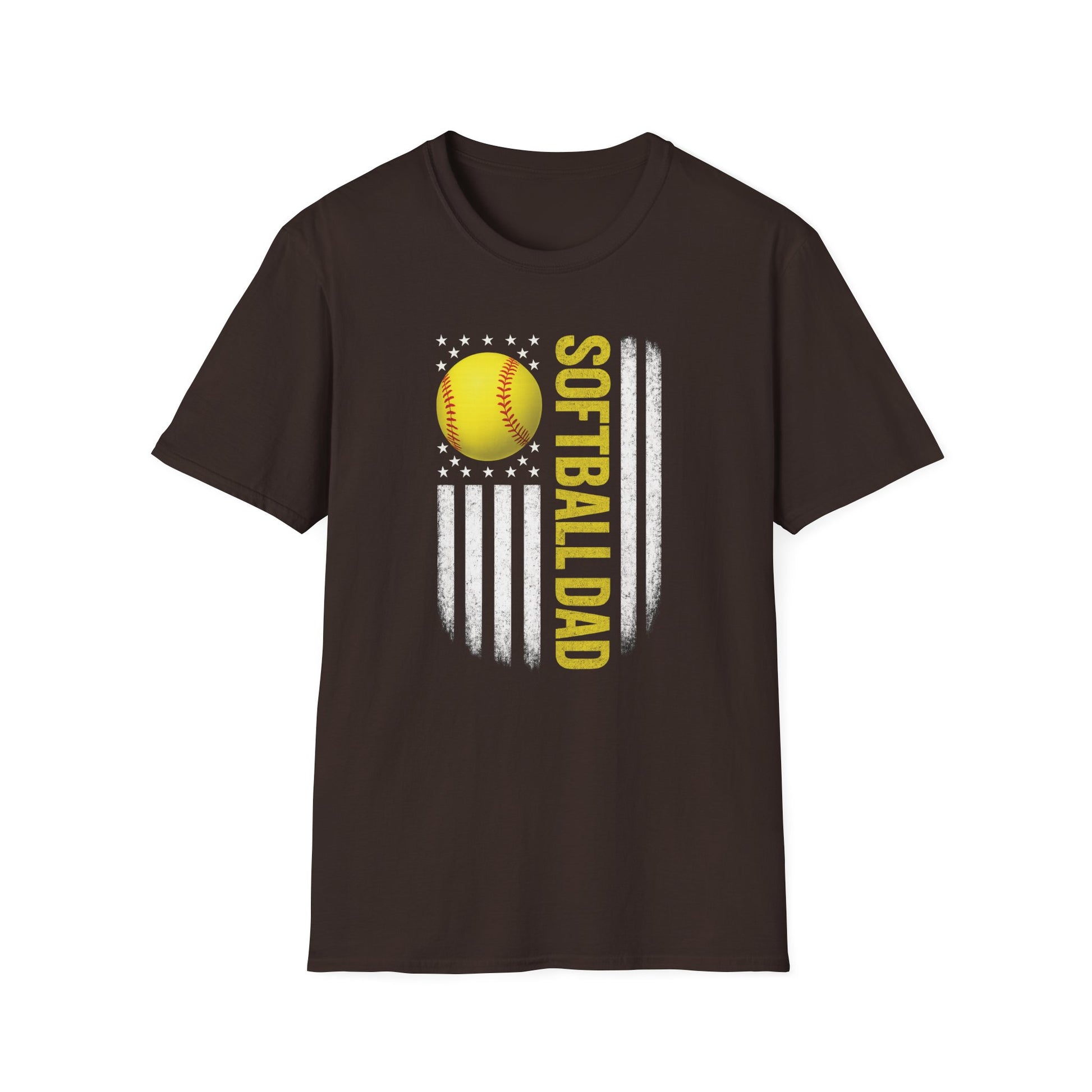 Show your softball pride with this bold Softball Dad American Flag T-Shirt. Featuring a distressed U.S. flag design with a bright yellow softball and “Softball Dad” text, this shirt is perfect for game days, tournaments, and everyday wear. Designed for the ultimate softball father, this tee combines comfort and style so you can cheer from the stands in pride. Whether you’re hauling gear, grilling after the game, or rooting for your player, this shirt says it all.